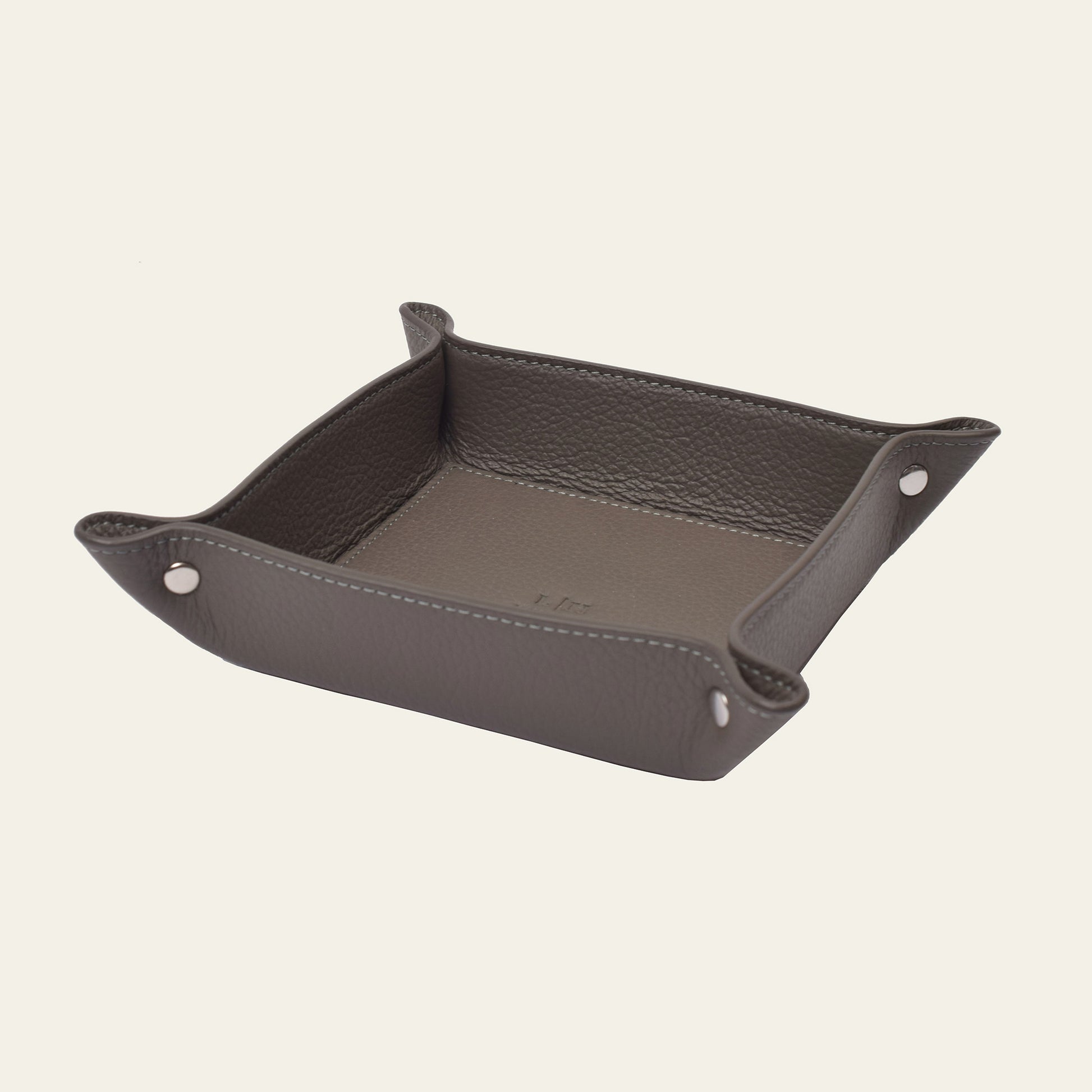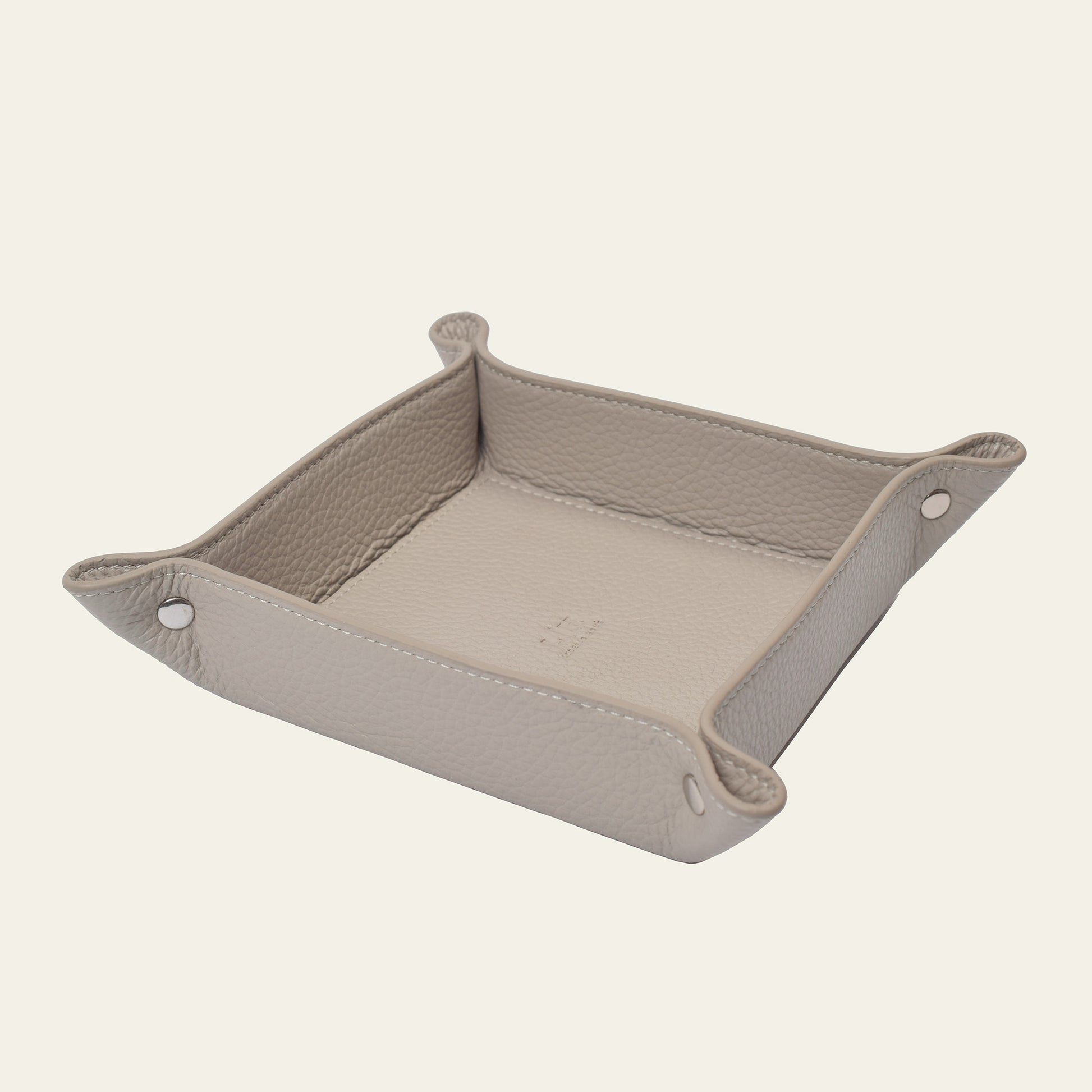 Diese kompakte Ablage aus echtem Leder (14 × 14 × 4 cm) ist die elegante Lösung für kleine Alltagsgegenstände. Ideal für Schlüssel, Schmuck, Münzen oder andere Kleinteile – ob im Eingangsbereich, Schlafzimmer oder Büro. Die niedrige Form wirkt dezent und funktional zugleich, während die schwarze Mikrofaser an der Unterseite empfindliche Oberflächen schützt und für Rutschfestigkeit sorgt. Ein hochwertiges Accessoire für stilvolle Ordnung – erhältlich in Stone, Shadow und Noir.