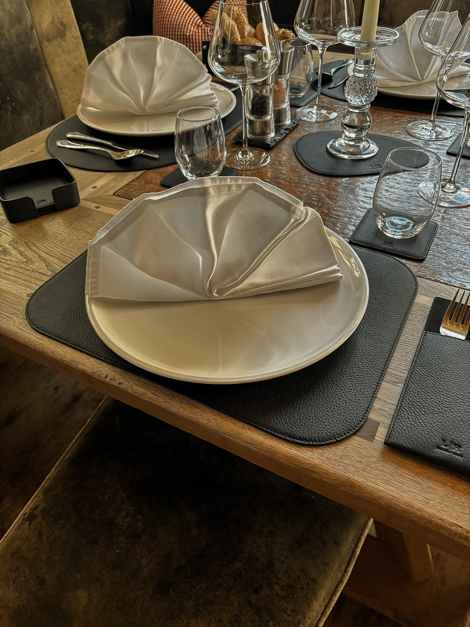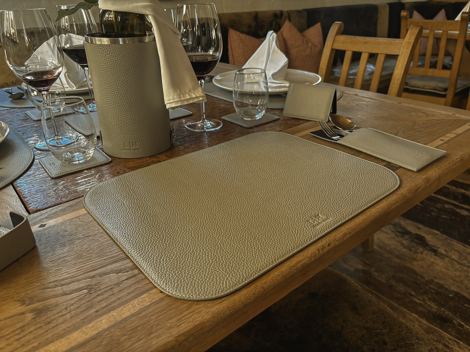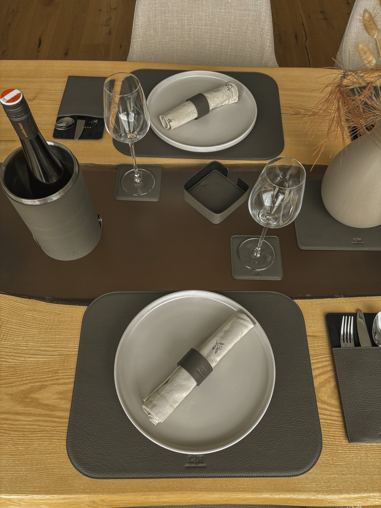 Setzen Sie mit unseren eleganten Platzsets aus echtem Leder stilvolle Akzente auf Ihrem Esstisch. Ob für den täglichen Gebrauch oder für festliche Anlässe – dieser rechteckige Telleruntersetzer vereint zeitloses Design mit hochwertiger Verarbeitung. Gefertigt aus echtem, strapazierfähigem Leder überzeugt das Platzset nicht nur durch seine edle Optik, sondern auch durch eine angenehm griffige Haptik. Es ist pflegeleicht, abwischbar und besticht durch seine natürliche Struktur – jedes Stück ein Unikat. Das rechteckige Format (ca. 41×31 cm) bietet ausreichend Platz für Teller, Besteck und Gläser und schützt zugleich empfindliche Tischoberflächen vor Flecken, Hitze und Kratzern. In Kombination mit weiteren Leder-Accessoires aus unserer Kollektion entsteht ein harmonisches Tischbild. Egal ob im Esszimmer, auf dem Küchentisch, in stilvollen Restaurants oder in der gehobenen Hotellerie – das Lederio-Platzset ist die ideale Wahl für alle, die Wert auf Ästhetik, Qualität und Nachhaltigkeit legen. Erhältlich in drei edlen Farben (Stone, Shadow, Noir) fügt es sich mühelos in verschiedene Einrichtungsstile ein. Auch als stilvolles Geschenk eignet sich das Platzset hervorragend – auf Wunsch in einer eleganten Geschenkbox verpackt.