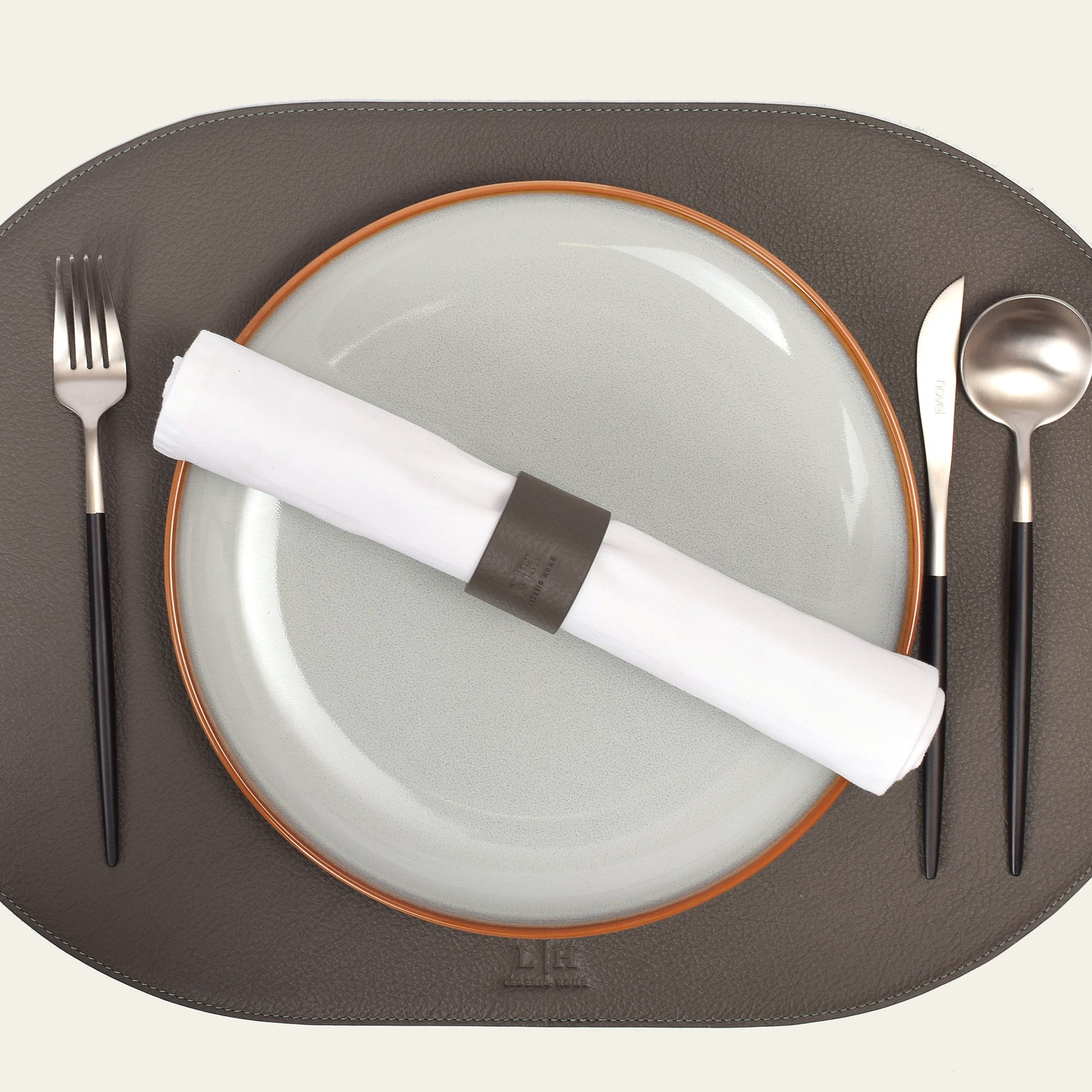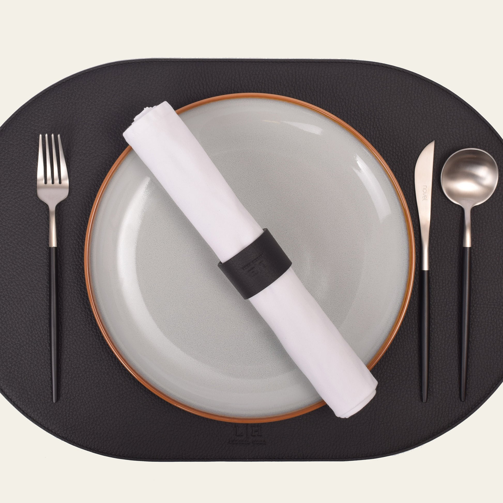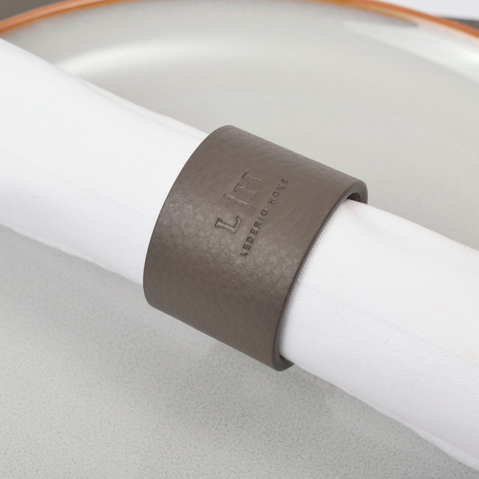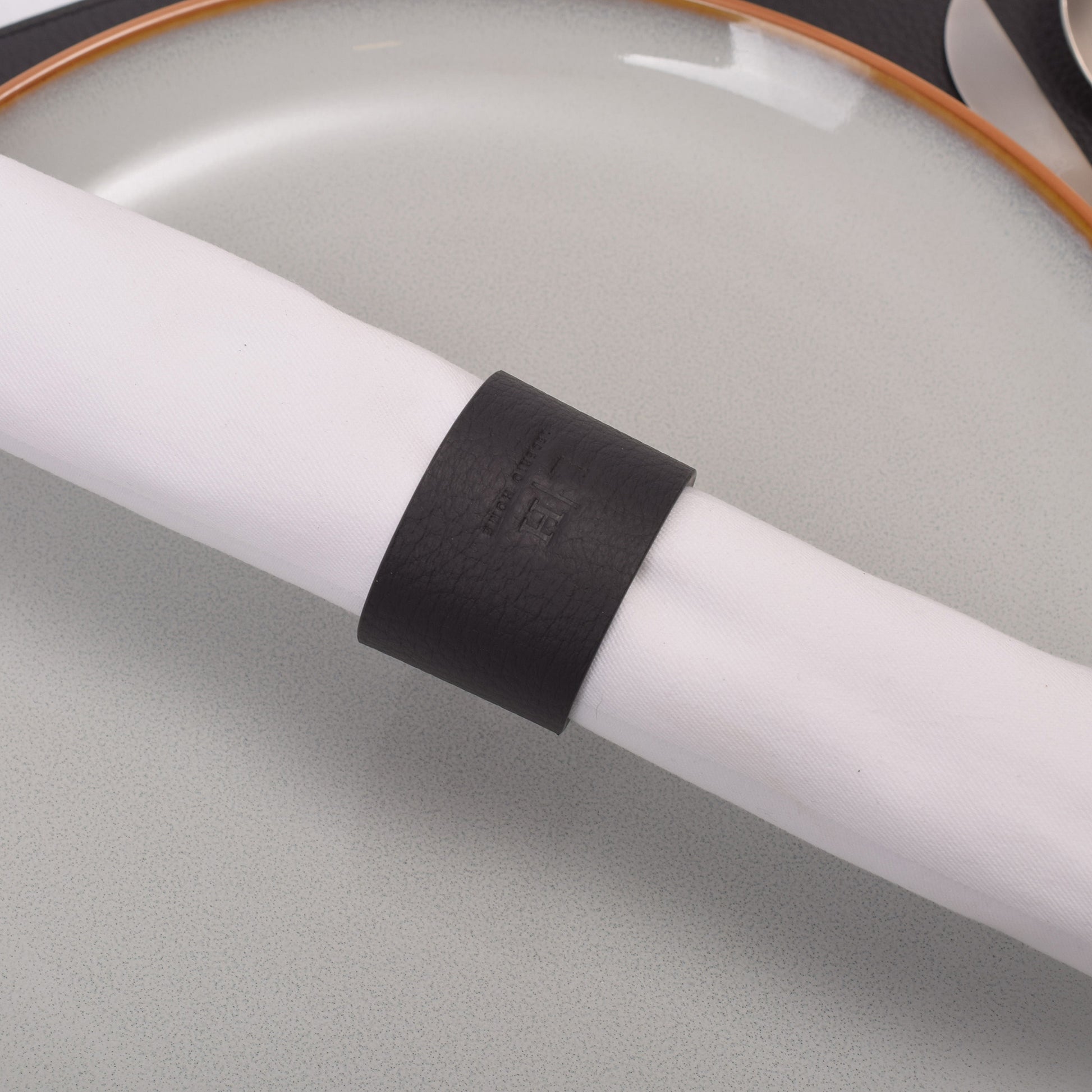 Dieser markante Serviettenring setzt stilvolle Akzente auf jedem gedeckten Tisch. Mit einem Durchmesser von 4,5 cm und einer Breite von 3,5 cm eignet er sich ideal für großzügig gefaltete Stoffservietten. Der integrierte Druckknopf macht das Anbringen besonders komfortabel und sorgt für sicheren Halt. Das hochwertige Echtleder verleiht dem Ring Struktur, Tiefe und eine natürliche Eleganz – passend für festliche Tafeln, moderne Deko-Konzepte oder gehobene Gastronomie. Ein ausdrucksstarkes Detail für stilbewusste Gastgeber:innen. Erhältlich in Stone, Shadow und Noir.