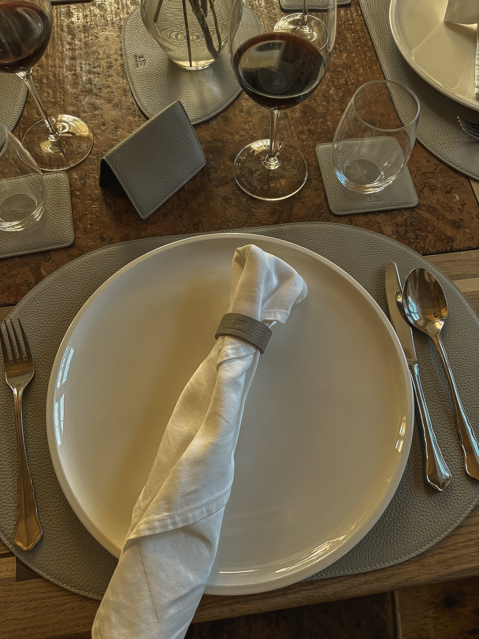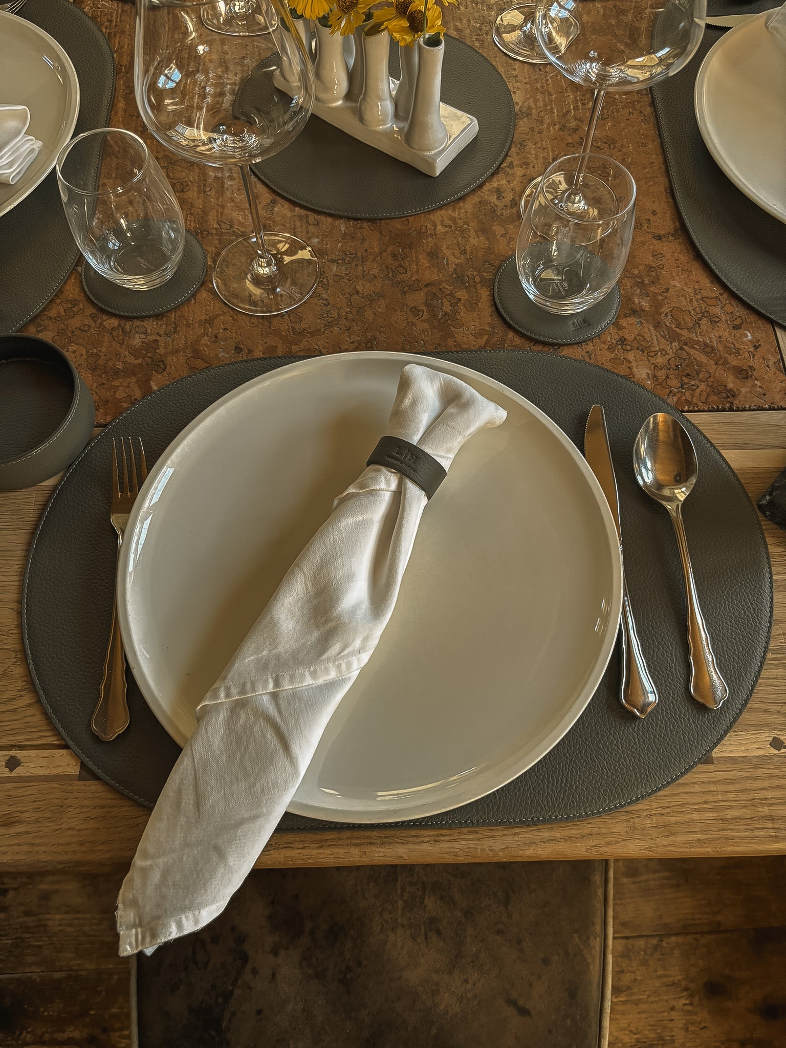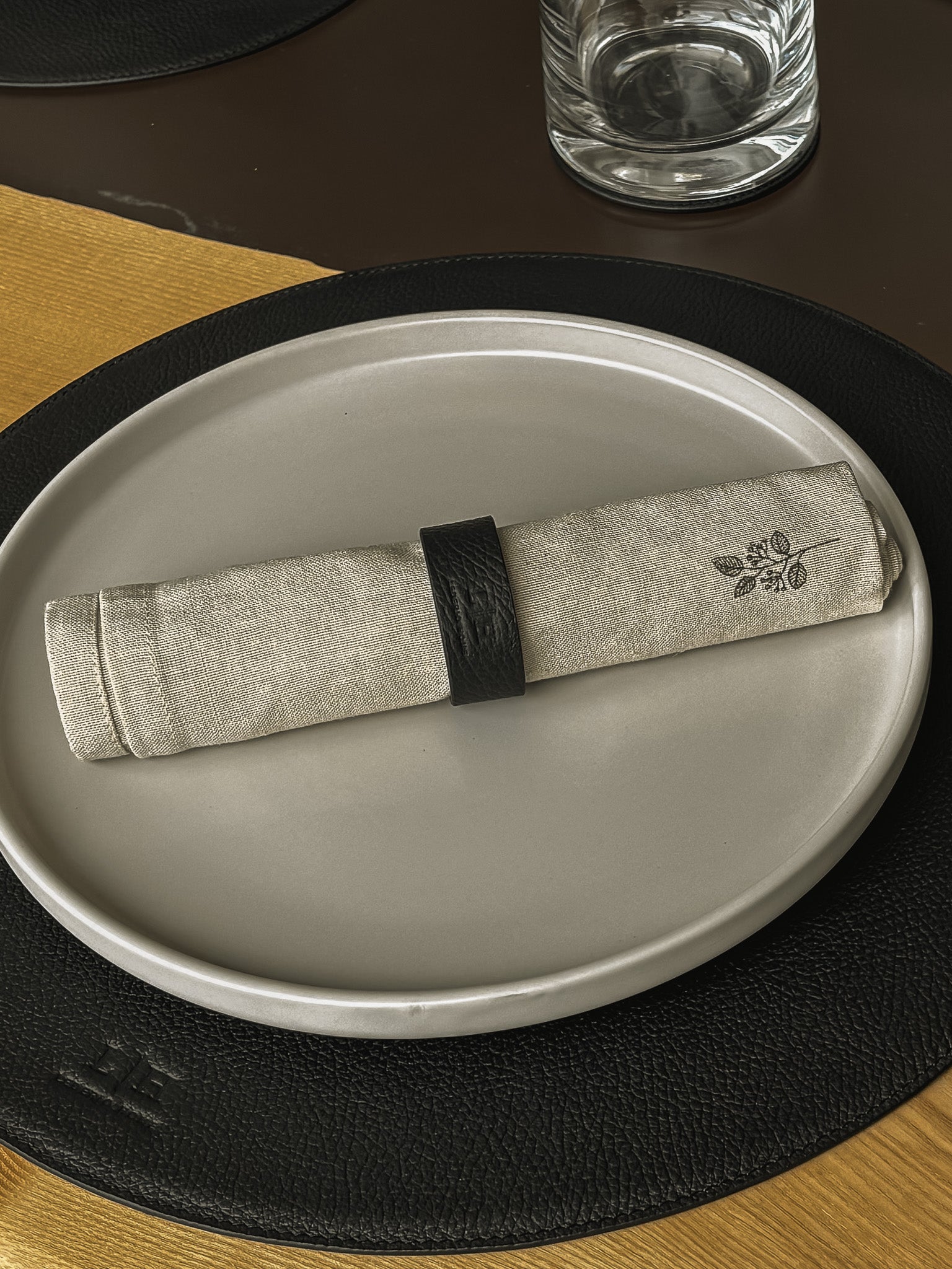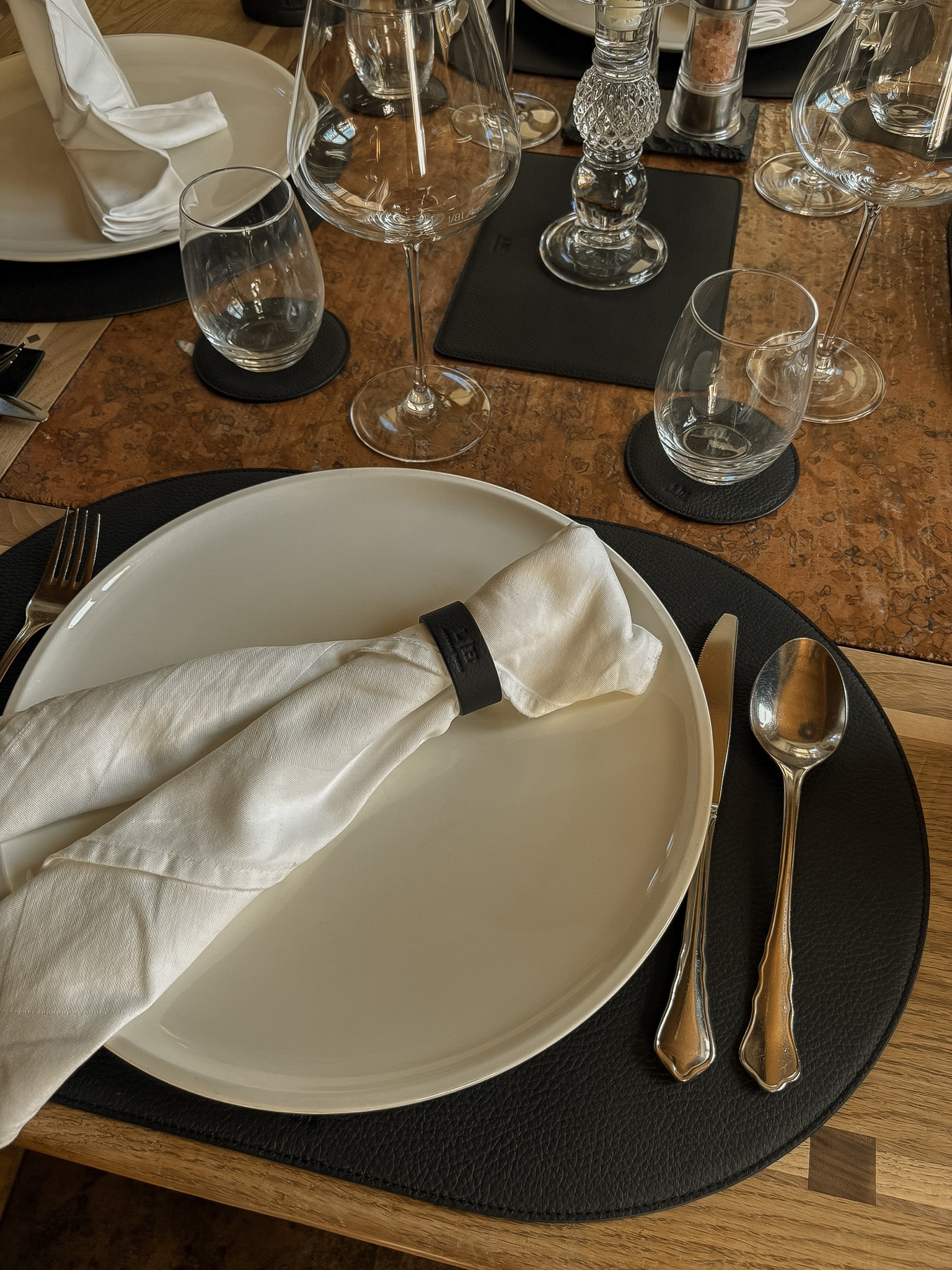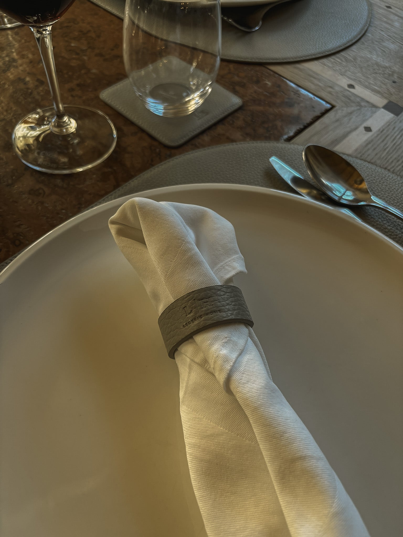 Dieser elegante Serviettenring verleiht jedem gedeckten Tisch eine edle Note. Mit einem Durchmesser von 4 cm und einer Breite von 2 cm eignet er sich ideal für Stoff- oder Papierservietten. Der praktische Steckverschluss sorgt für einfaches Handling und sicheren Halt. Gefertigt aus echtem Leder bringt der Ring nicht nur natürliche Struktur und Haptik ins Tischarrangement, sondern fügt sich auch harmonisch in klassische wie moderne Stilwelten ein. Ob für festliche Anlässe oder den stilvollen Alltag – ein kleines Detail mit großer Wirkung. Erhältlich in den Farben Stone, Shadow und Noir.