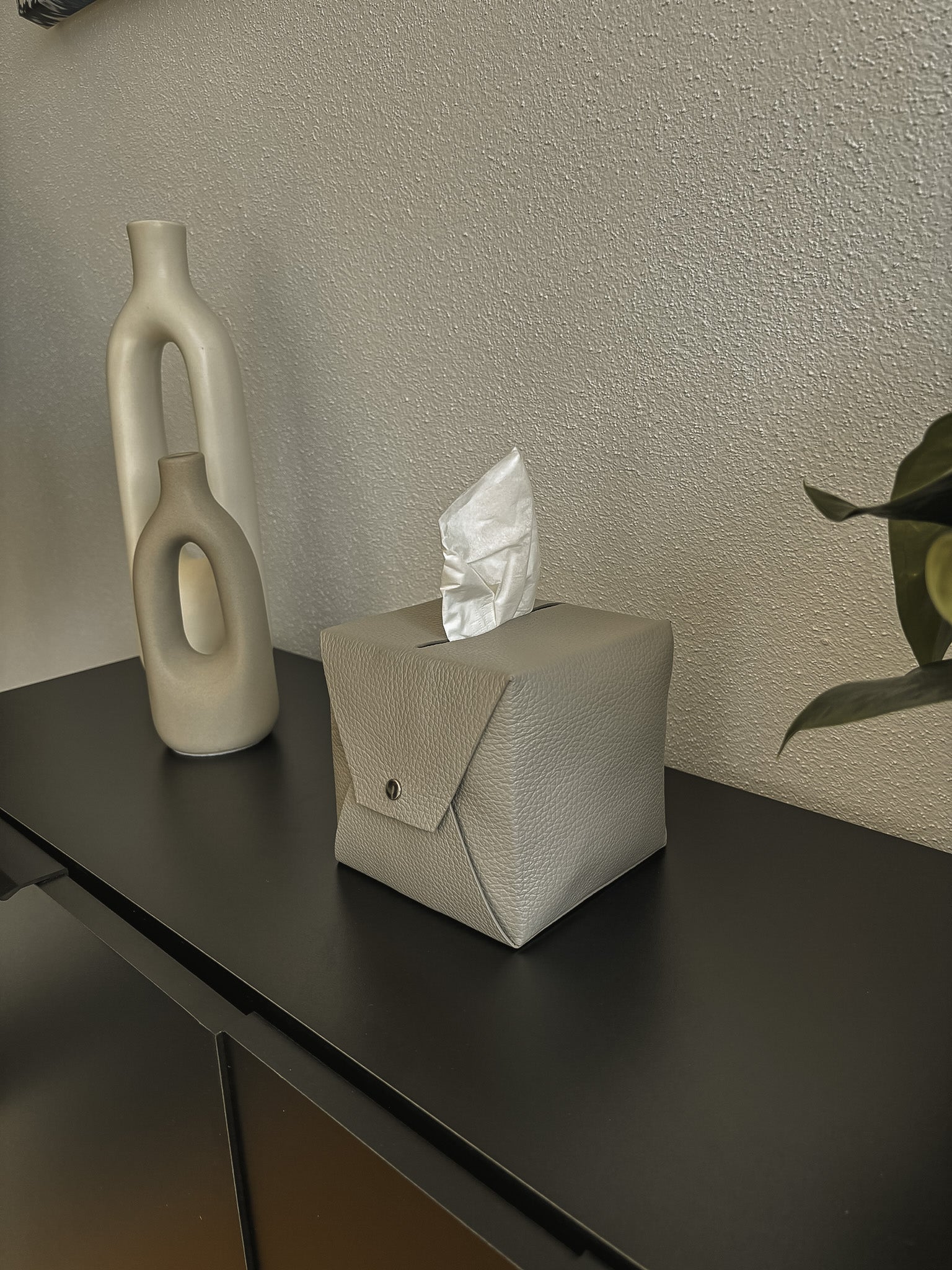Diese formschöne Verkleidung aus echtem Leder (12 × 12 × 12 cm) verwandelt jede herkömmliche Taschentuchbox in ein stilvolles Wohnaccessoire. Die passgenaue Hülle lässt sich schnell über gängige Würfelboxen stülpen und wertet Badezimmer, Schlafzimmer oder Wohnzimmer optisch auf. Die klare Form, hochwertige Verarbeitung und die rutschfeste Mikrofaser auf der Unterseite sorgen für einen sicheren und eleganten Auftritt. Erhältlich in Stone, Shadow und Noir – für ein harmonisches Gesamtbild in jedem Raum.