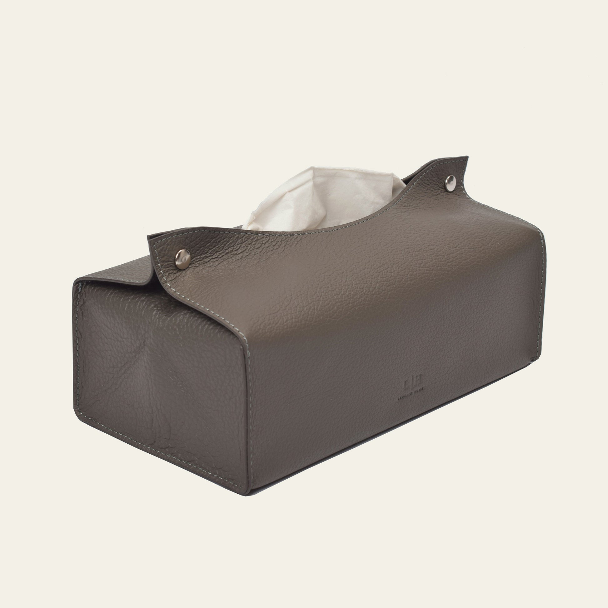Diese großzügige Taschentuchbox-Verkleidung aus echtem Leder (24 × 13 × 12 cm) sorgt für einen edlen Look auf Sideboards, Waschtischen oder Nachttischen. Sie passt über gängige große Taschentuchboxen und verwandelt diese in ein stilvolles Accessoire für Bad, Büro oder Schlafzimmer. Die hochwertige Lederoberfläche verleiht dem Raum eine luxuriöse Note, während die rutschfeste Mikrofaser an der Unterseite für sicheren Halt sorgt. Verfügbar in den Farbtönen Stone, Shadow und Noir.
