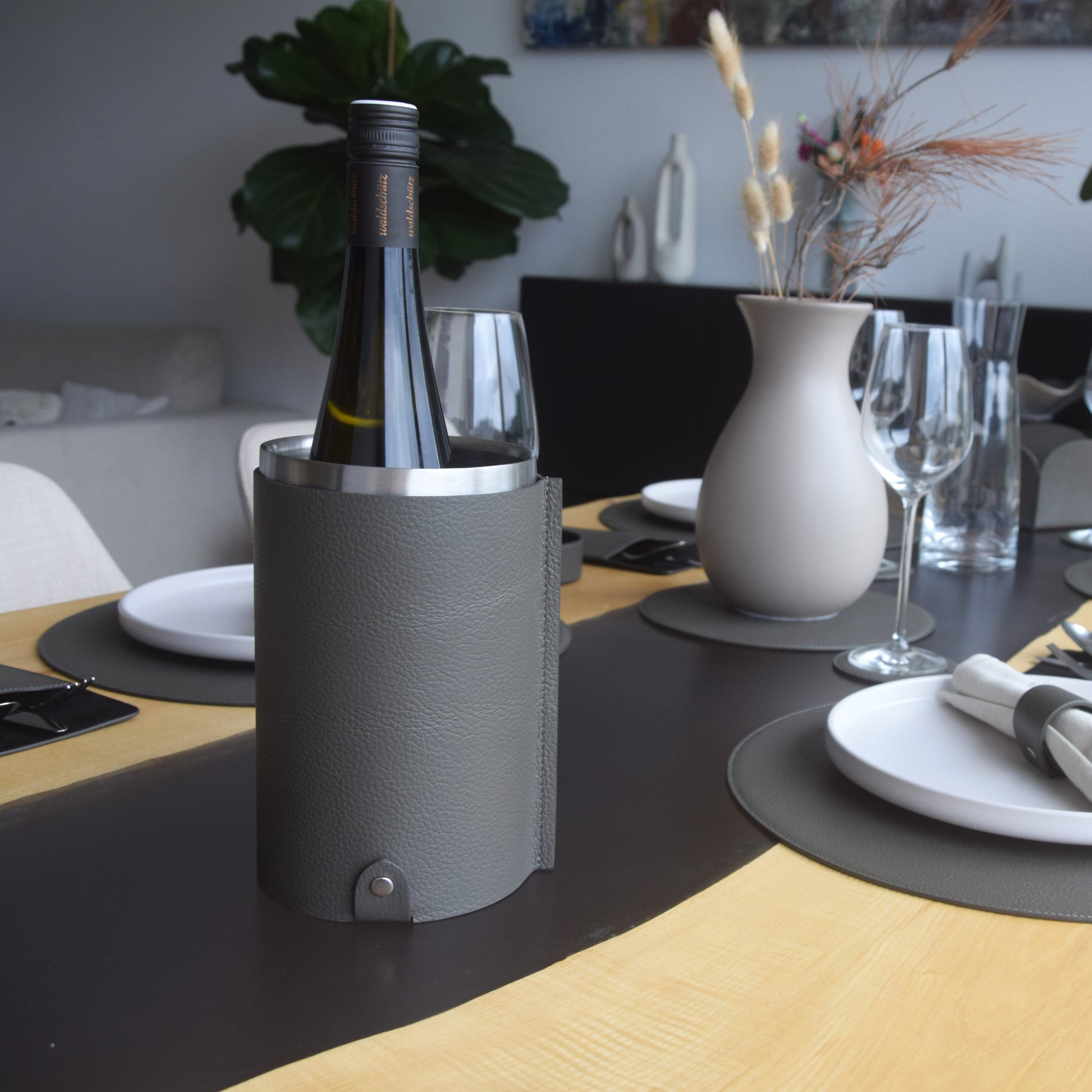 Weinkühler aus Leder mit Edelstahleinsatz – stilvolle Kühlung für Wein & Sekt
